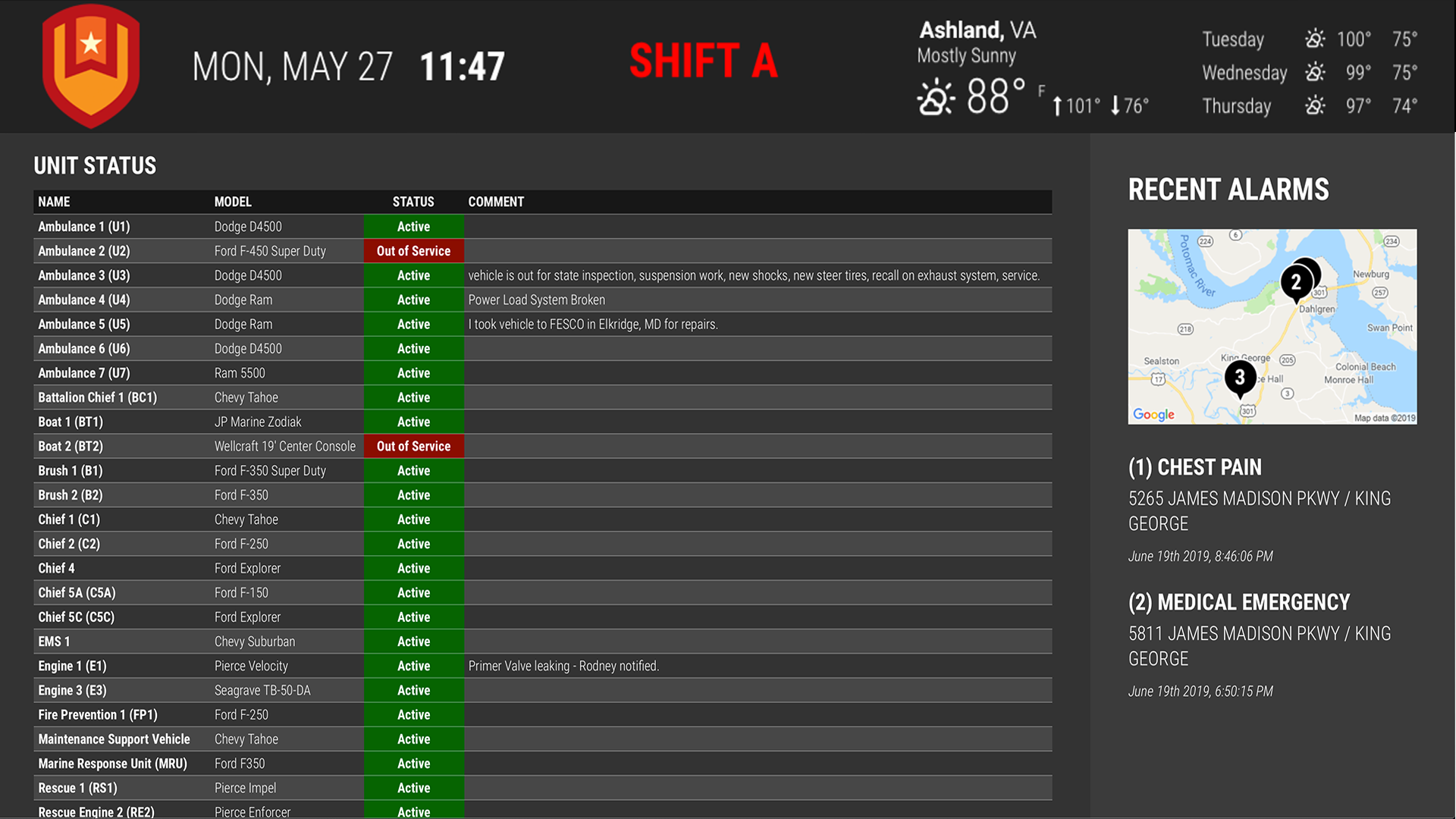 Vehicle Status At-A-Glance: Instantly view the current status of each unit