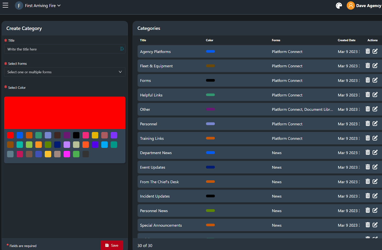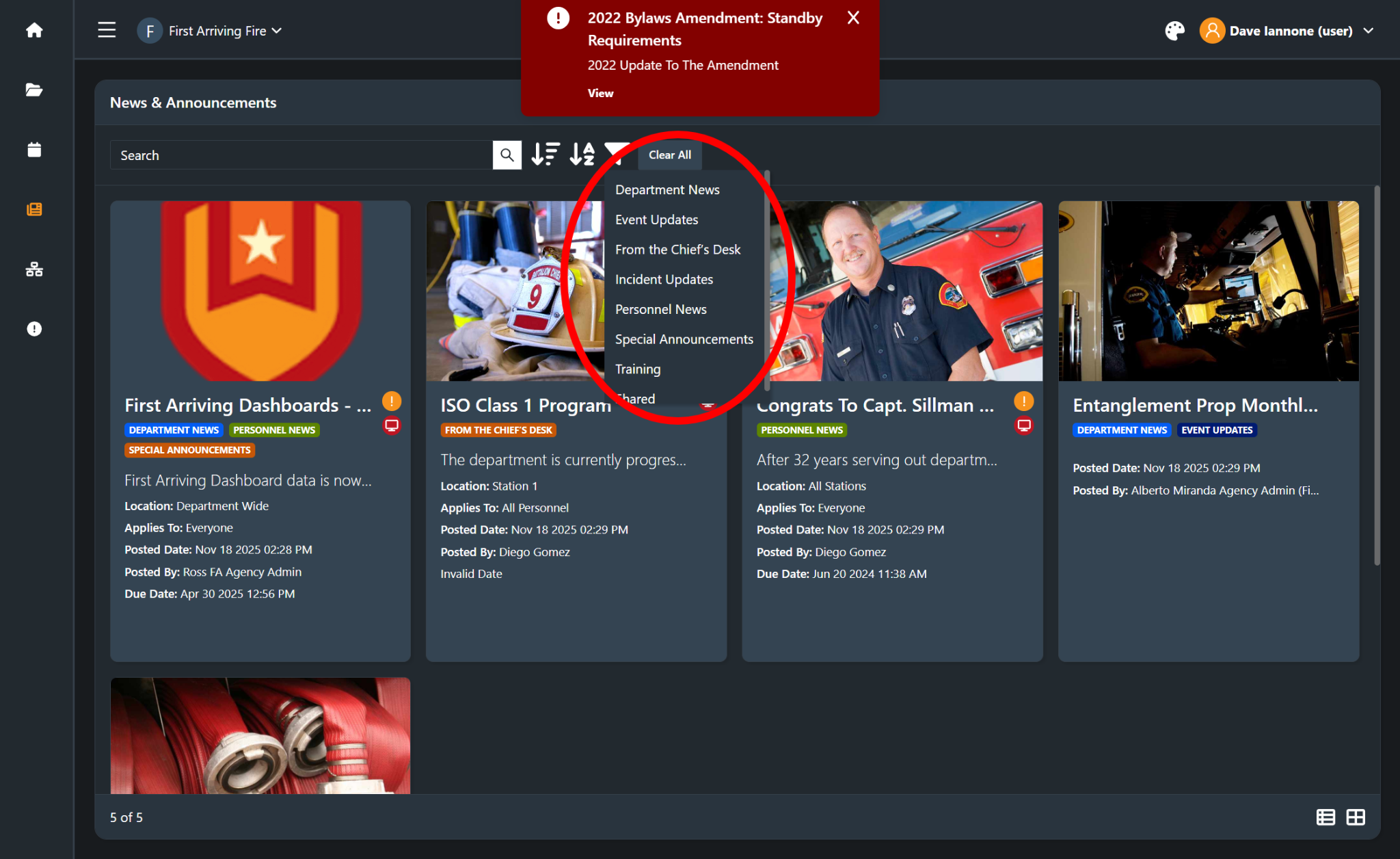By assigning categories to News, Announcements, Events, Documents, Alerts, and other content types, agencies can organize information by topic or function. This makes it easy for members to quickly find what they need whether they are accessing content on a large-format station dashboard, desktop, tablet, or mobile device.