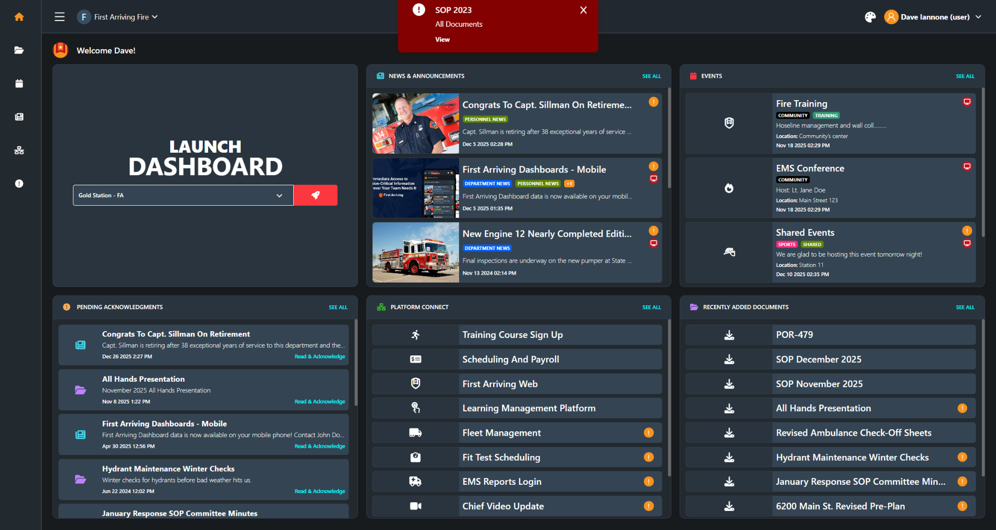 First Arriving gives you access to dashboard content whether you are in the station, in the field, or off duty.