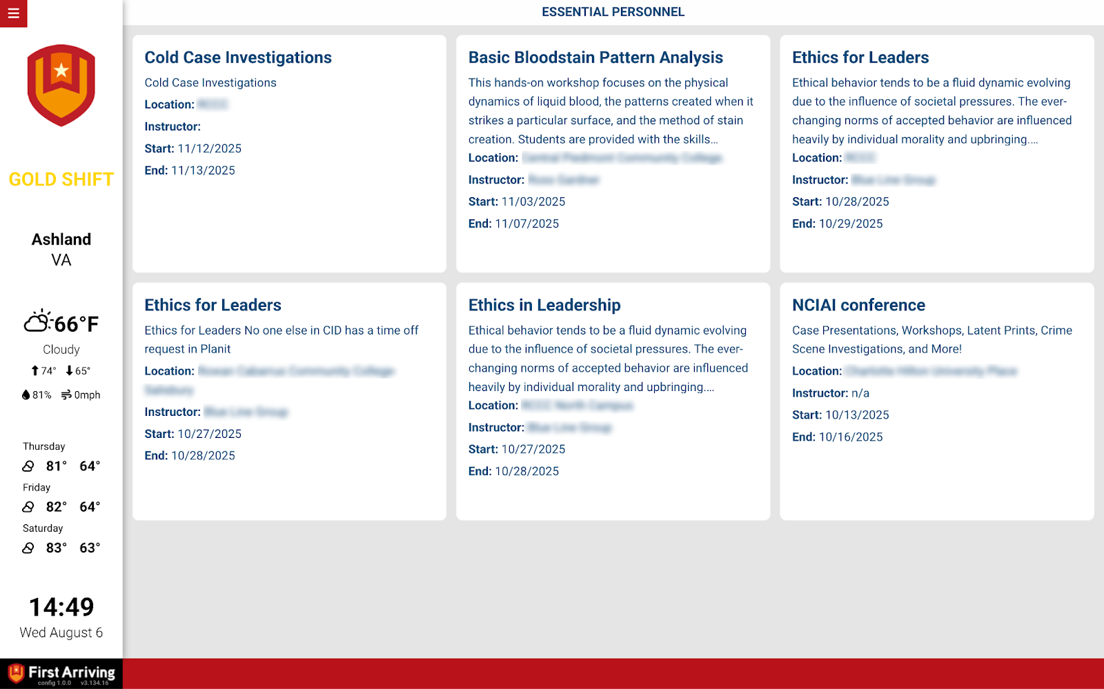 Our integration between Essential Personnel and First Arriving allows you to seamlessly bring training events data directly onto your Dashboard